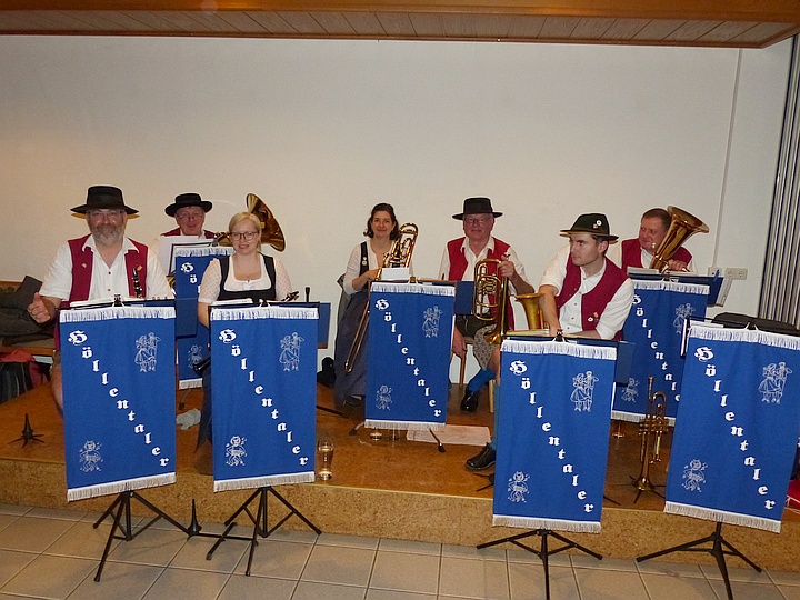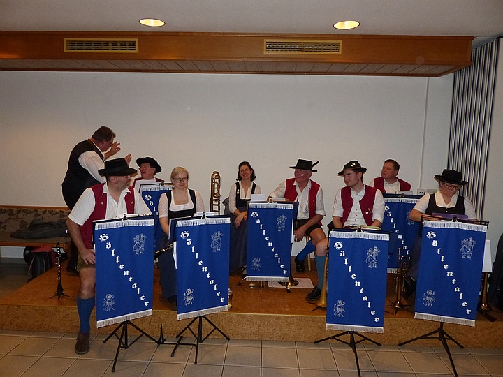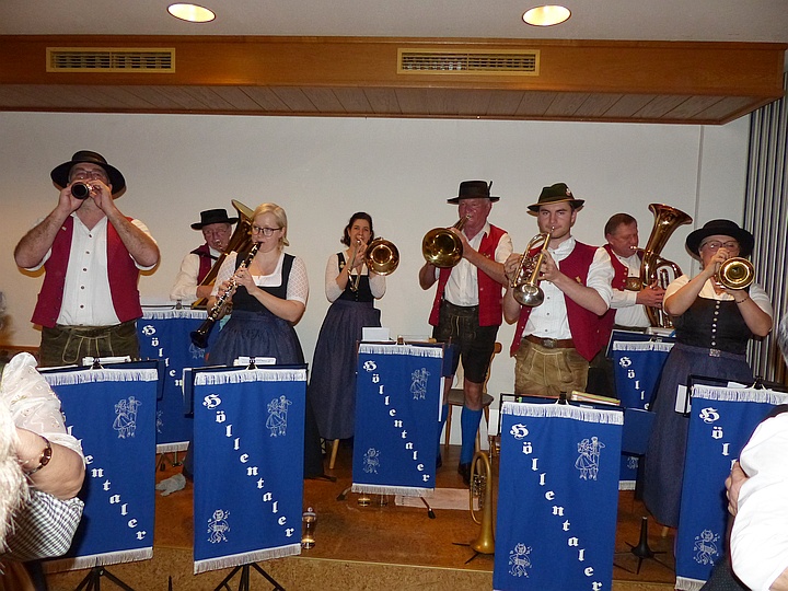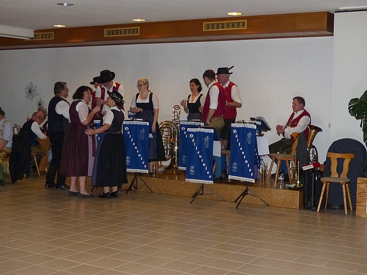 | Die Blaskapelle „Höllentaler“ sorgte für beste Stimmung unter den Volkstänzern und für eine volle Tanzfläche. |