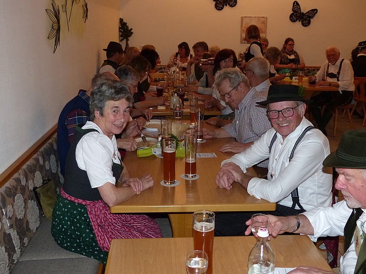 „Da lacht nicht nur die Sonne draußen ...“, sagte Bertl Wecker, der zusammen mit seiner Frau Helga die Volkstanzgruppe in Semerskirchen leitet. Dank des guten Wetters sind viele Gäste bis aus Amberg, Roding, Mühldorf, Ingolstadt und sogar Lenggries angereist. |