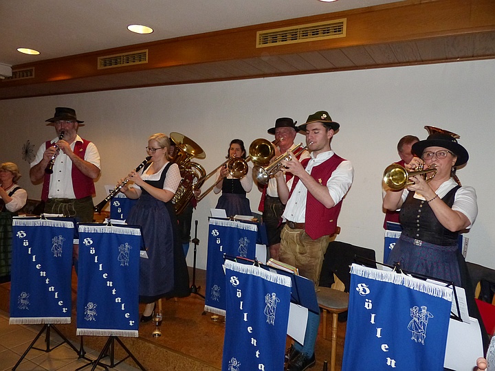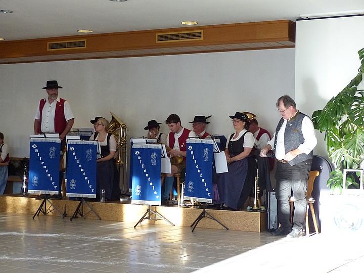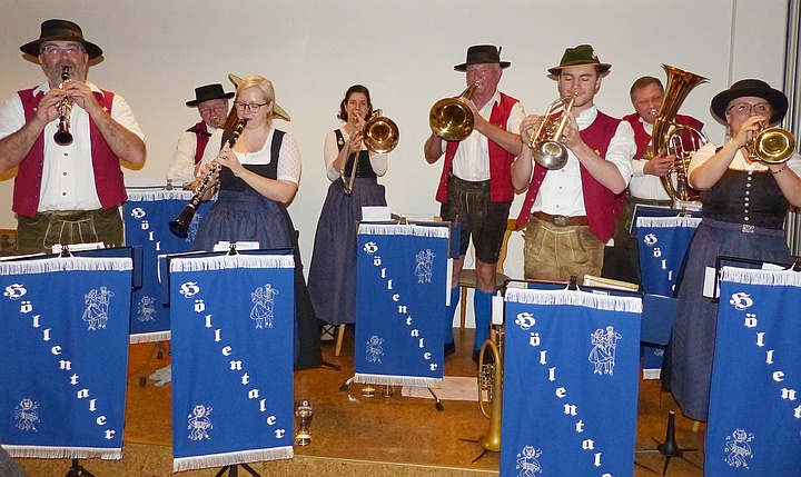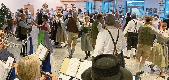 | Die Blaskapelle „Höllentaler“ sorgte für beste Stimmung unter den Volkstänzern und für eine volle Tanzfläche. |
