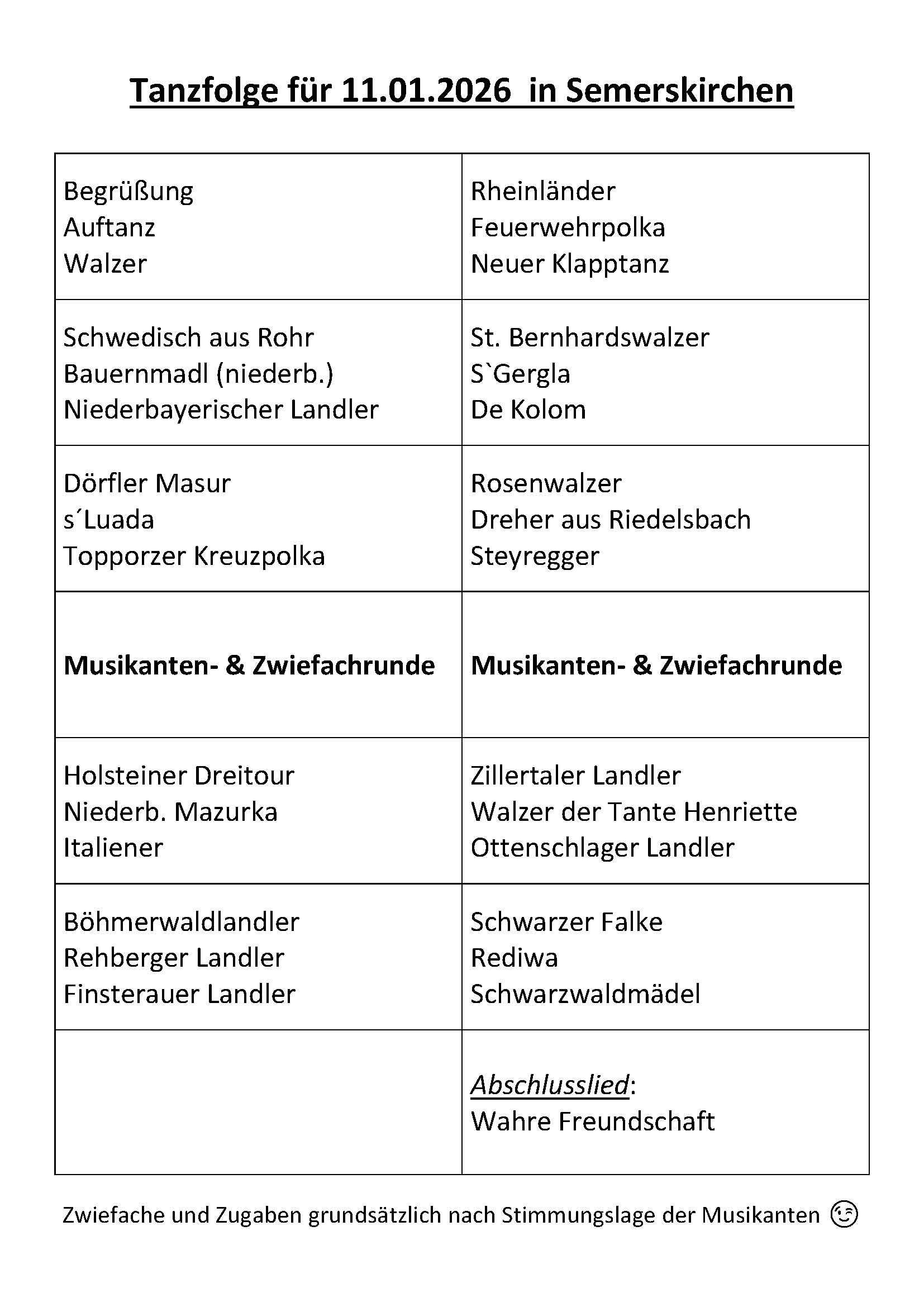 Zum mittlerweile 18. Mal hatten die Volkstanzfreunde des Bürgervereins Langquaid ihre Gäste zum öffentlichen Volkstanz ins Gasthaus Haslbeck nach Semerskirchen geladen. Weil es in der Region der erste Volkstanz des Jahres ist, nutzten die Gäste diese Möglichkeit und waren zahlreich zu der Veranstaltung gekommen. Ein buntes Programm mit Walzer, Polka, Zwiefachen und vielen verschiedenen Figurentänzen brachte schnell eine Riesenstimmung in den Saal. |